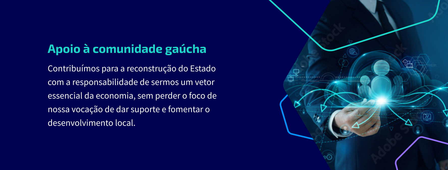 O ano de 2024 ficará marcado na história do Rio Grande do Sul. Diante da tragédia climática que afetou profundamente o Estado e a comunidade gaúcha, agimos com empatia, agilidade e responsabilidade. Como resposta imediata, lançamos o Programa Banrisul Reconstruir RS, uma iniciativa solidária que proporcionou apoio a clientes, pequenos negócios e comunidades. Implementamos medidas emergenciais para amparar a população, garantir a continuidade das operações e contribuir para a reconstrução do Estado. Entre as ações, destacamos o suporte a empresas e pequenos empreendimentos afetados pelas inundações, beneficiados por linha de crédito com juros subsidiados pelo Governo. Também oferecemos apoio financeiro, repactuação de dívidas, isenção de tarifas e suporte aos colaboradores. Impulsionamos os setores produtivos com novos produtos e serviços, como a Conta Única, a Conta Digital com abertura 100% via app e a Banri Global Account.